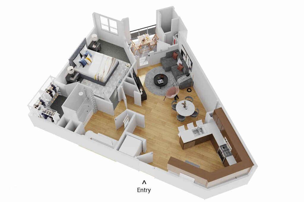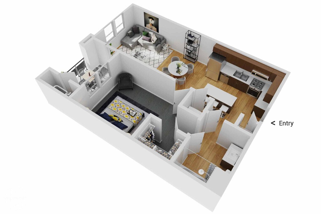 1 Dormitorio, 1 Baño, 720 pies²Disponible Dec 19Galería del Modelo
