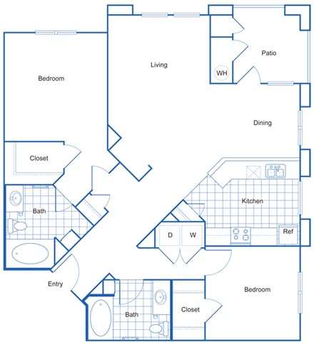A1 - Plano 2 Los planos de la planta son una interpretación artística. Todas las dimensiones son aproximadas. Los tamaños o el detalle del producto real y sus especificaciones pueden variar. No todas las características están disponibles en todos los hogares para rentar. Los precios y la disponibilidad están sujetos a cambios. El alquiler que se muestra es mensual. Se pueden aplicar ciertos cargos, por ejemplo, entrega de paquetes, recolección de basura, agua, servicios, etc. Depositos varian. Consulta a un representante para conocer detalles.