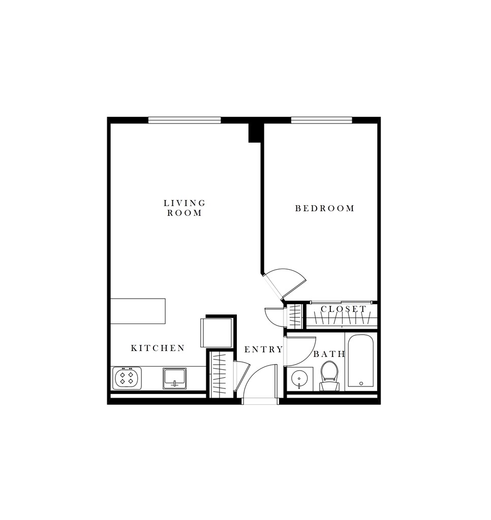 1 Dormitorio, 1 Baño, 550 pies²Disponible AhoraGalería del Modelo