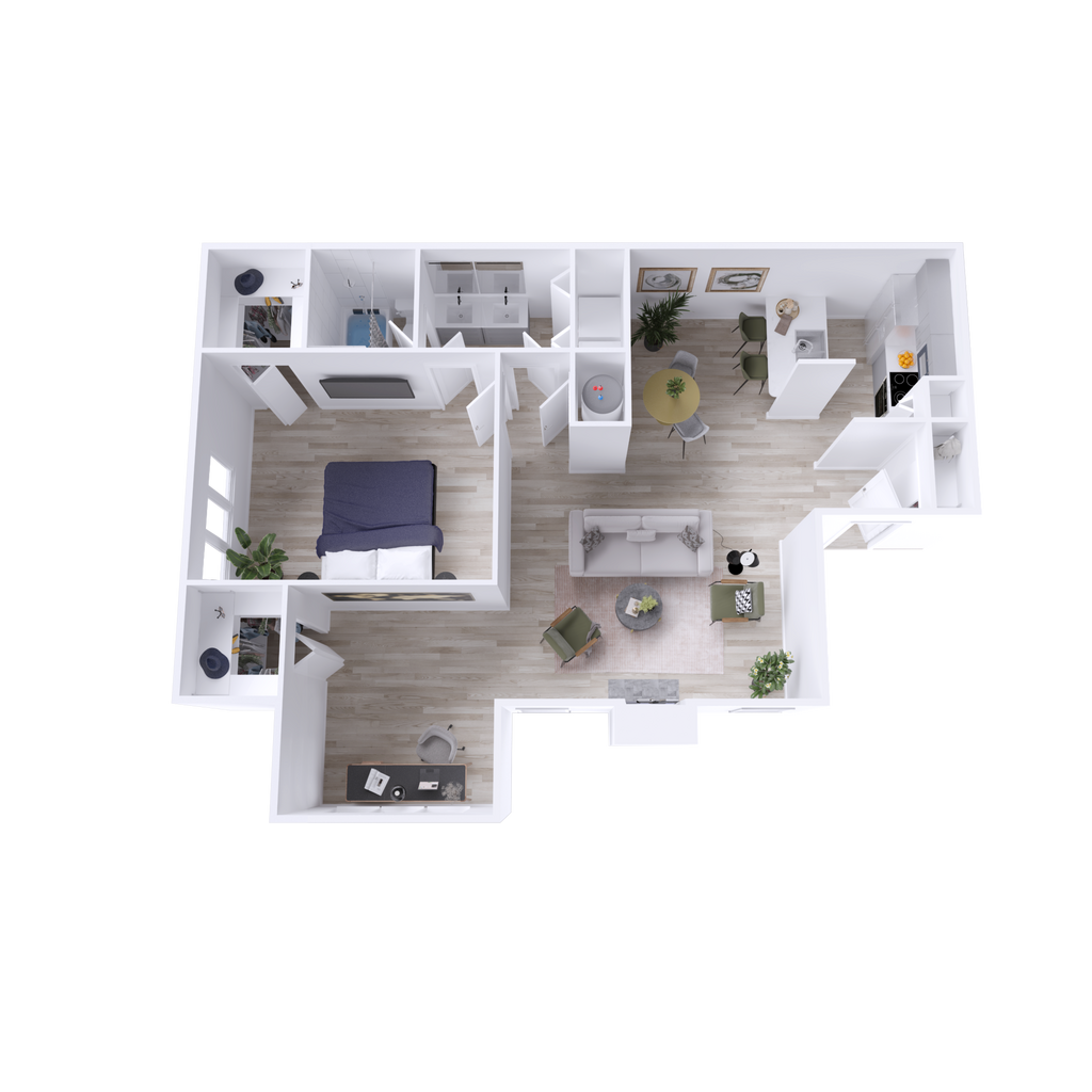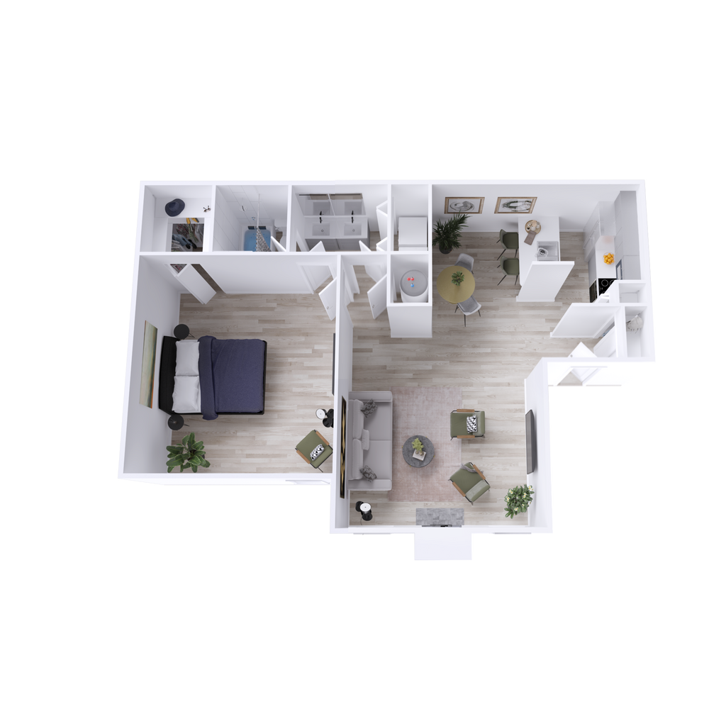 1 Dormitorio, 1 Baño, 715 pies²Precio Mensual TotalDisponible AhoraGalería del Modelo