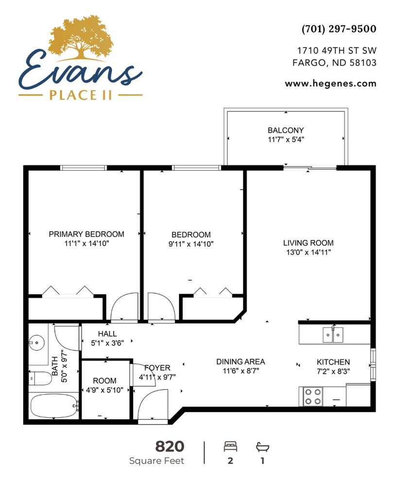 Modelo de apartamento: 1710 - 2 Bed 1 Bath Corner Unit2 Dormitorios, 1 Baño, 820 sq ftDisponible December 1, 2025PlanosFotos![]()