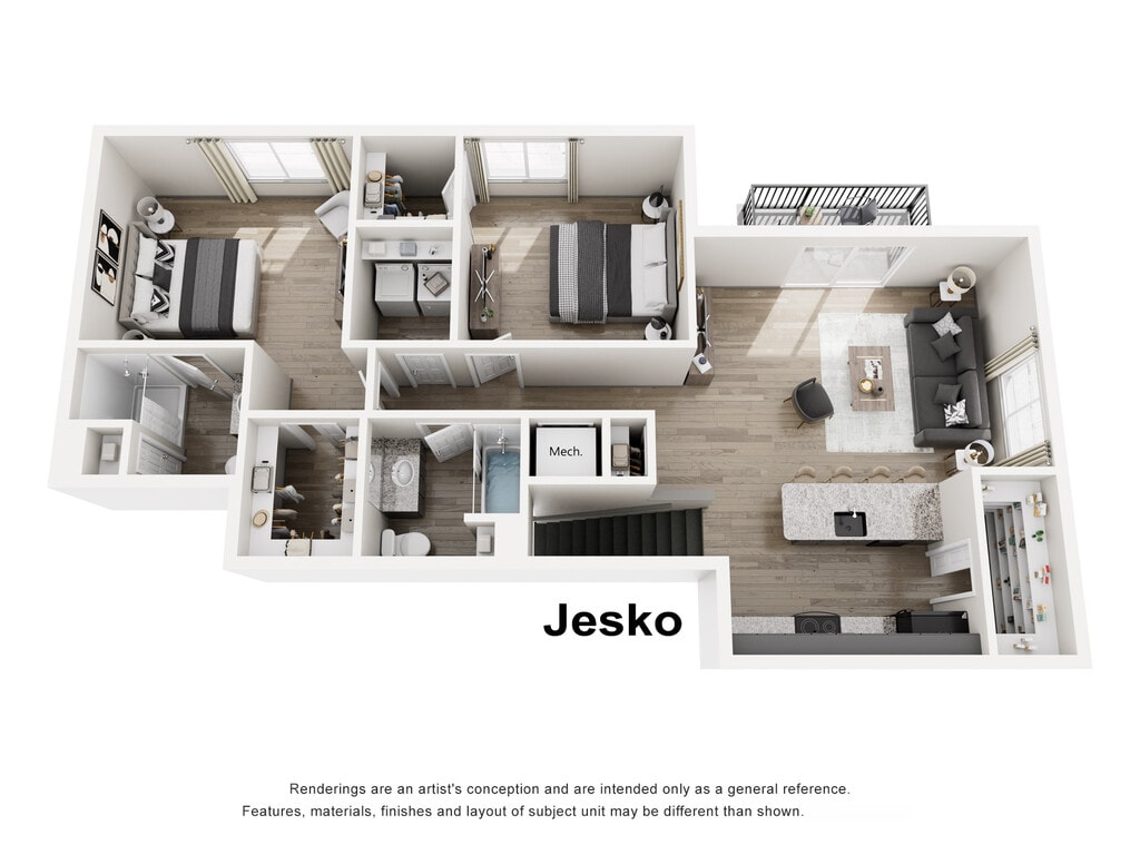 Modelo de apartamento: Jesko$1,3252 Dormitorios, 2 Baños, 1339 sq ftDisponible December 16, 2025![]()