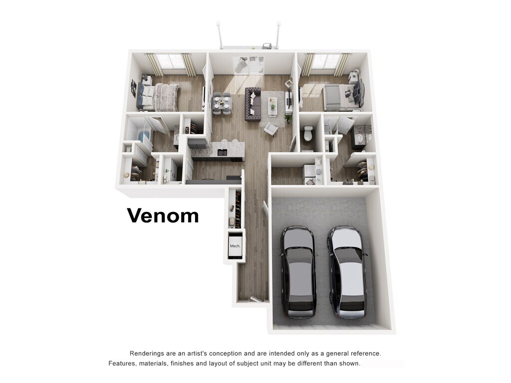 Modelo de apartamento: Venom$1,3752 Dormitorios, 2.5 Baños, 1291 sq ftDisponible December 16, 2025![]()
