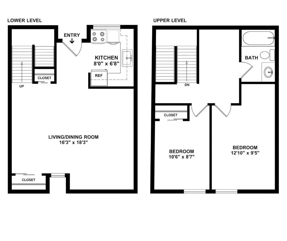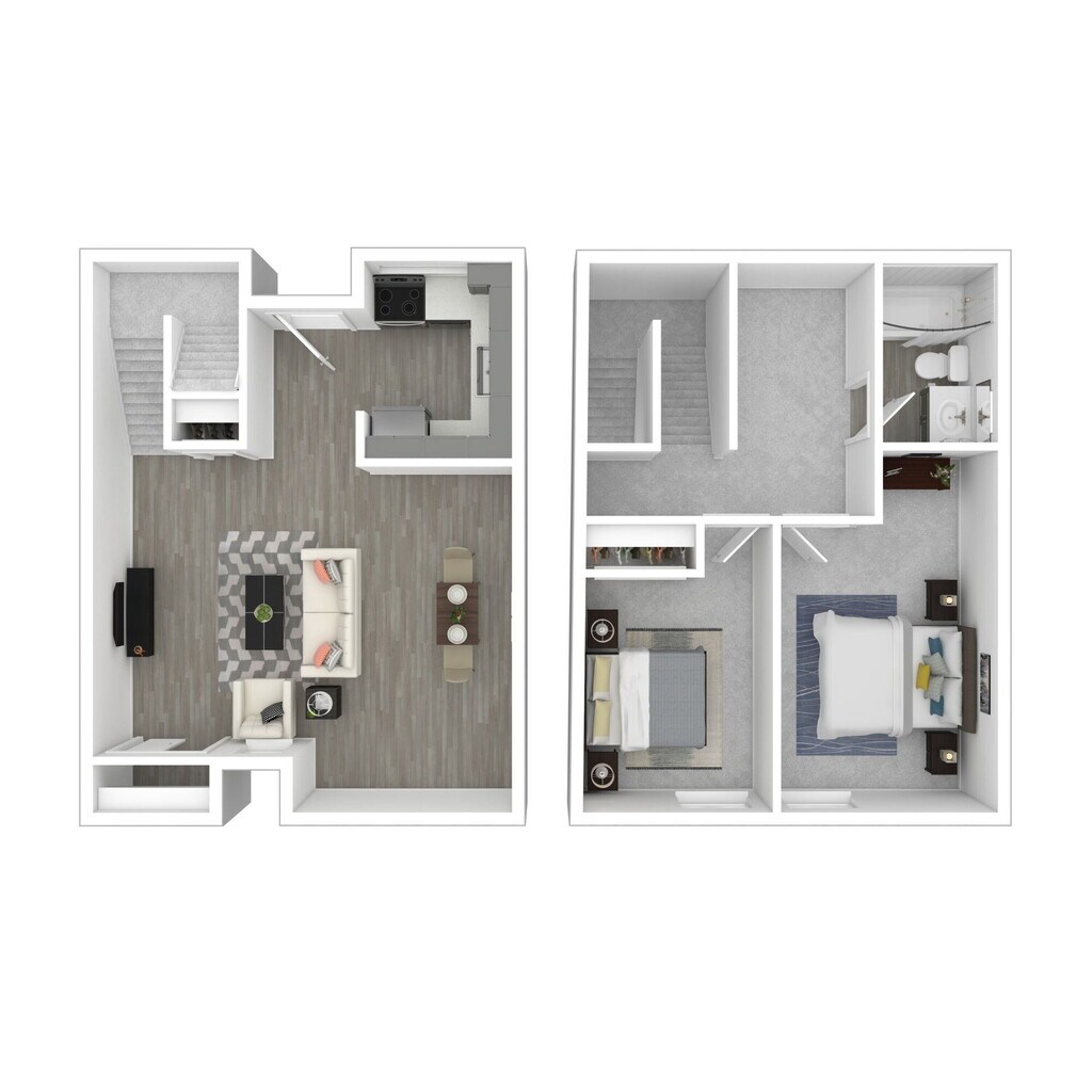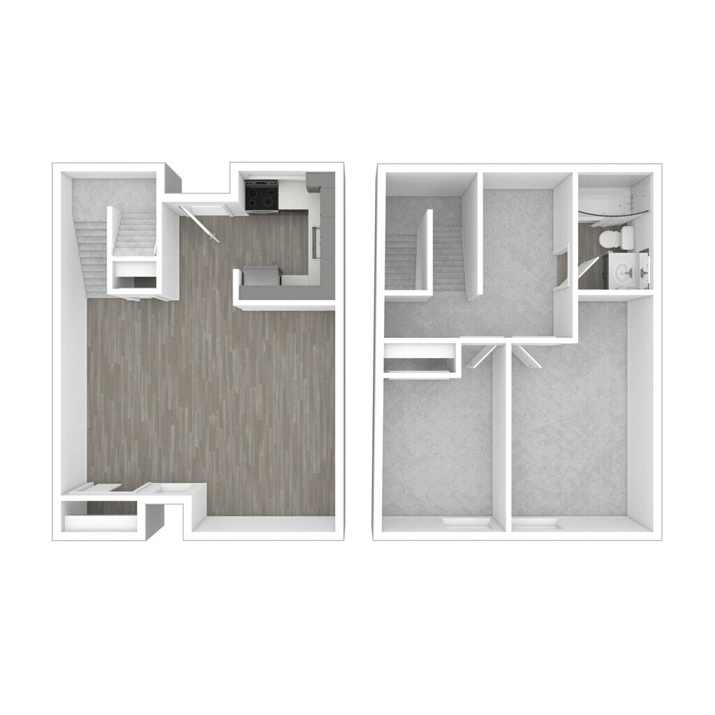 Modelo de apartamento: Two Bedroom TownhomeDesde $1,4042 Dormitorios, 1 Baño, 864 sq ftNo DisponibleTwo Bedroom Townhome - Plano 1 Two Bedroom Townhome - Plano 2 Two Bedroom Townhome - Plano 3