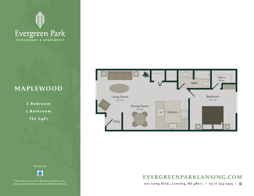 Modelo de apartamento: MaplewoodDesde $1,0501 Dormitorio, 1 Baño, 732 sq ftDisponible Ahora![]()