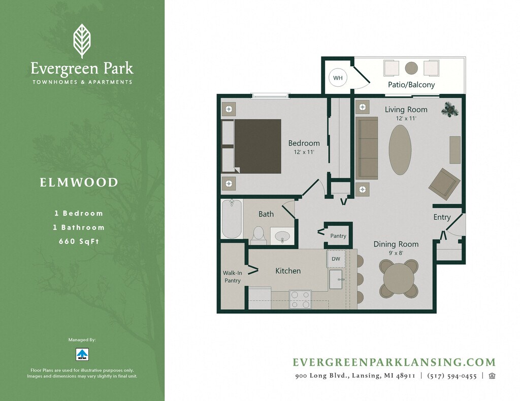 Modelo de apartamento: ElmwoodLlame para Precios1 Dormitorio, 1 Baño, 660 sq ftNo DisponiblePlanosFotos![]()