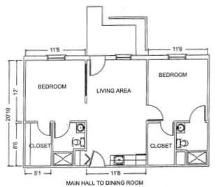 Modelo de apartamento: 2 Bed 2 Bath$9002 Dormitorios, 2 Baños, 738 sq ftNo Disponible![]()