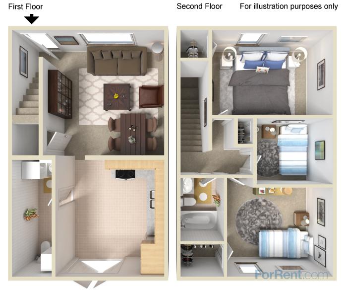Modelo de apartamento: 3 Bedroom TownhouseDesde $1,0603 Dormitorios, 1.5 Baños, 1050 sq ftNo DisponiblePlanosFotos![]()