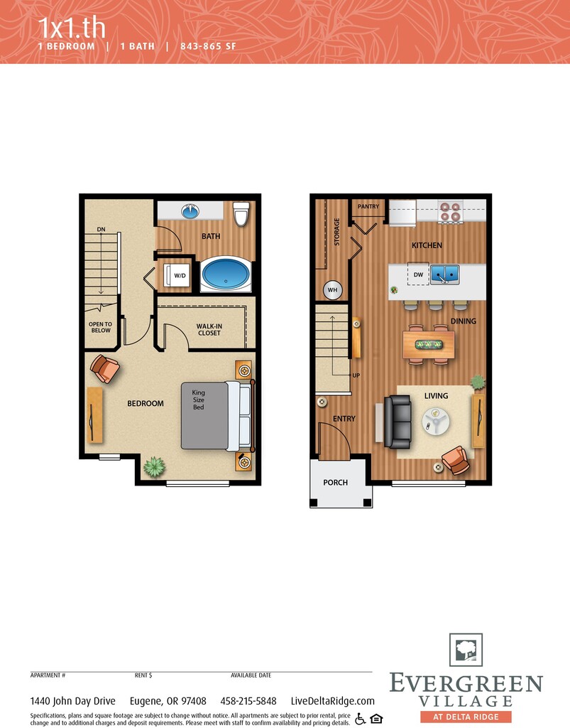 Evergreen Village at Delta Ridge ofrece apartamentos de 1 a 3 Dormitorios desde $1,599 con 720–1,381 pies cuadrados. Aquí está el precio actual y la disponibilidad: