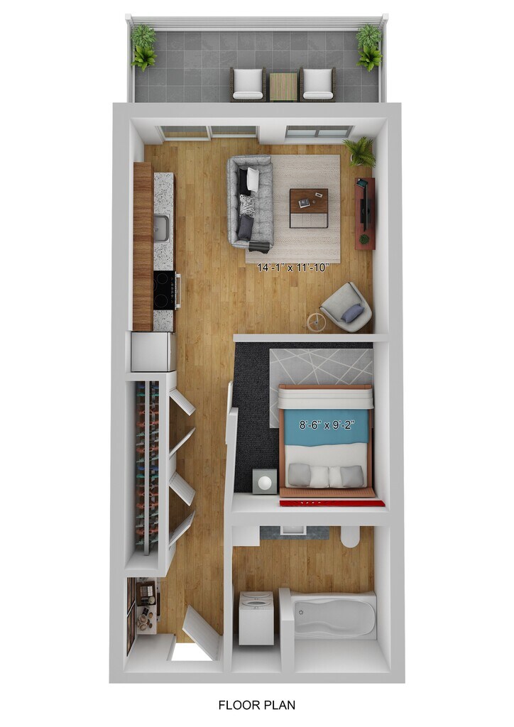 Estudio, 1 Baño, 568 pies²Precio Mensual TotalDisponible AhoraEl más grandeEsta opción tiene las unidades más grandes para este modeloGalería del Modelo