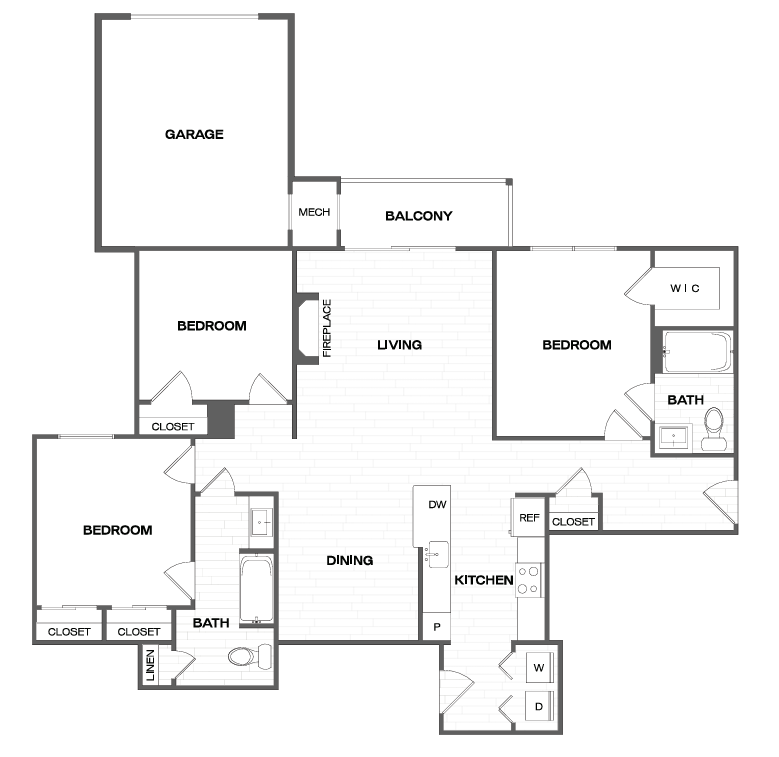 1 Dormitorio, 1 Baño, 1071 pies²Precio Mensual TotalDisponible AhoraGalería del Modelo