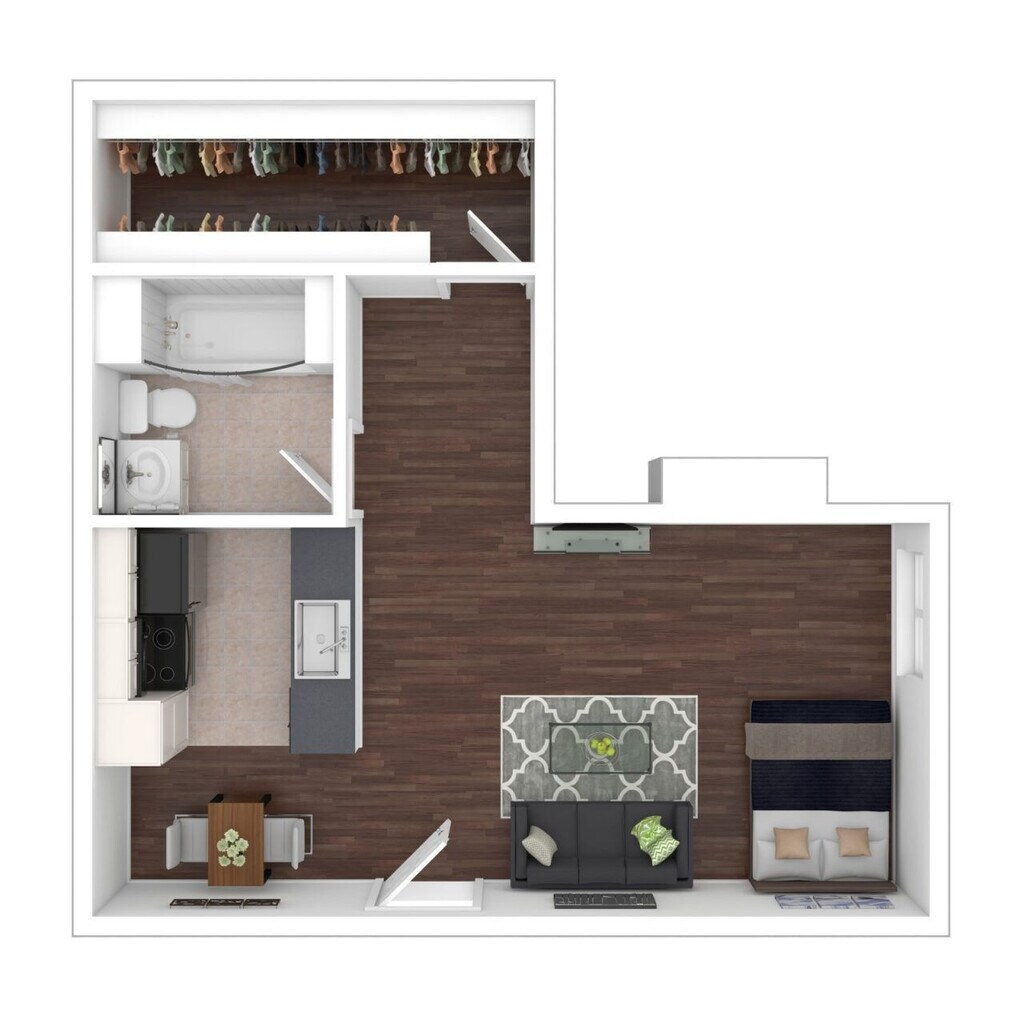 Modelo de apartamento: A1Desde $1,0791 Dormitorio, 1 Baño, 486 sq ftDisponible AhoraPlanosFotos![]()