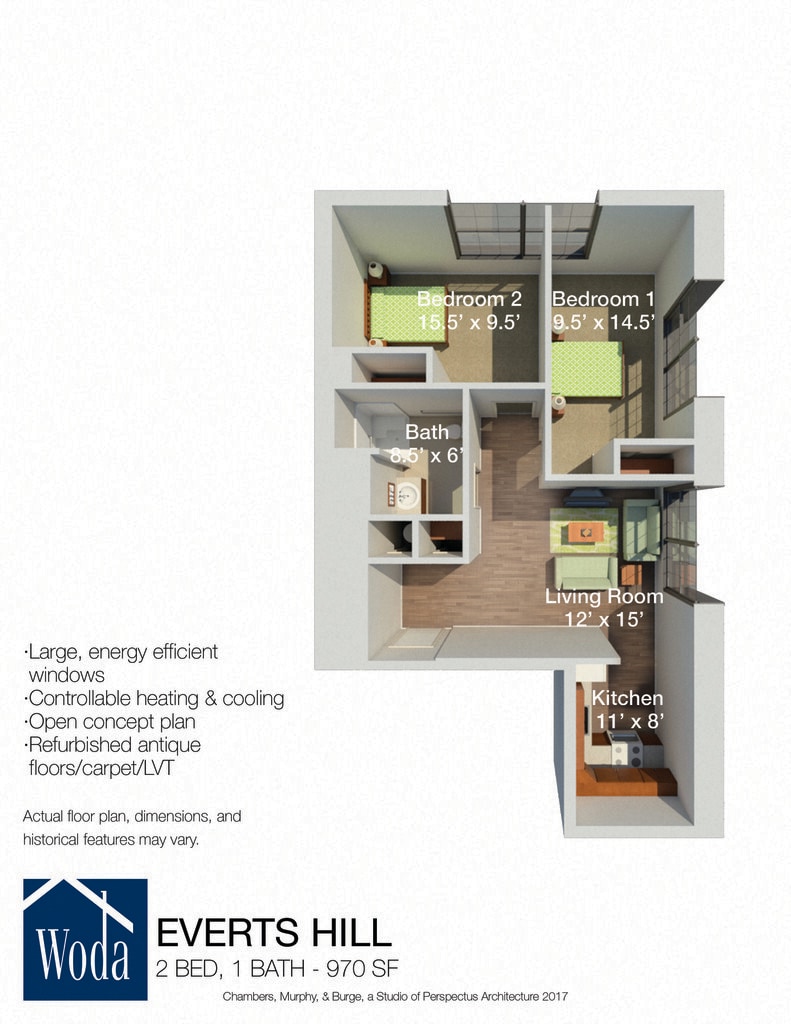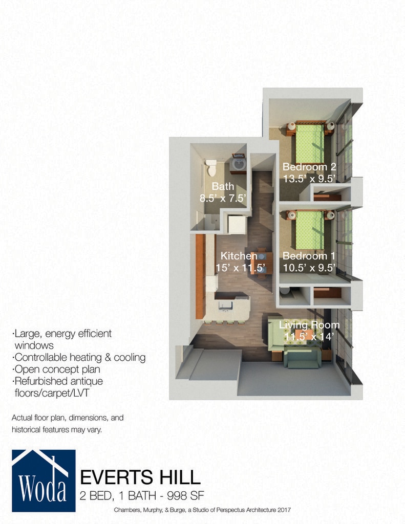 Modelo de apartamento: 2 Bedroom2 Dormitorios, 1 Baño, 935 sq ftDisponible November 30, 2025![]()