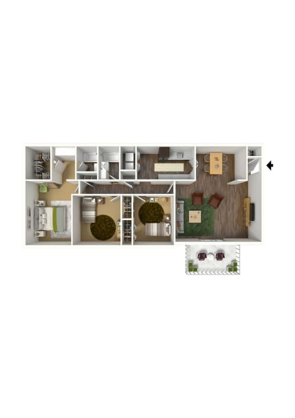 Modelo de apartamento: The OakDesde $1,5993 Dormitorios, 2 Baños, 1323 sq ftDisponible Ahora![]()