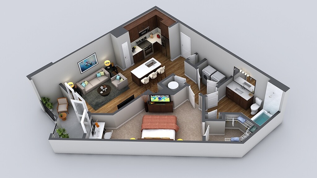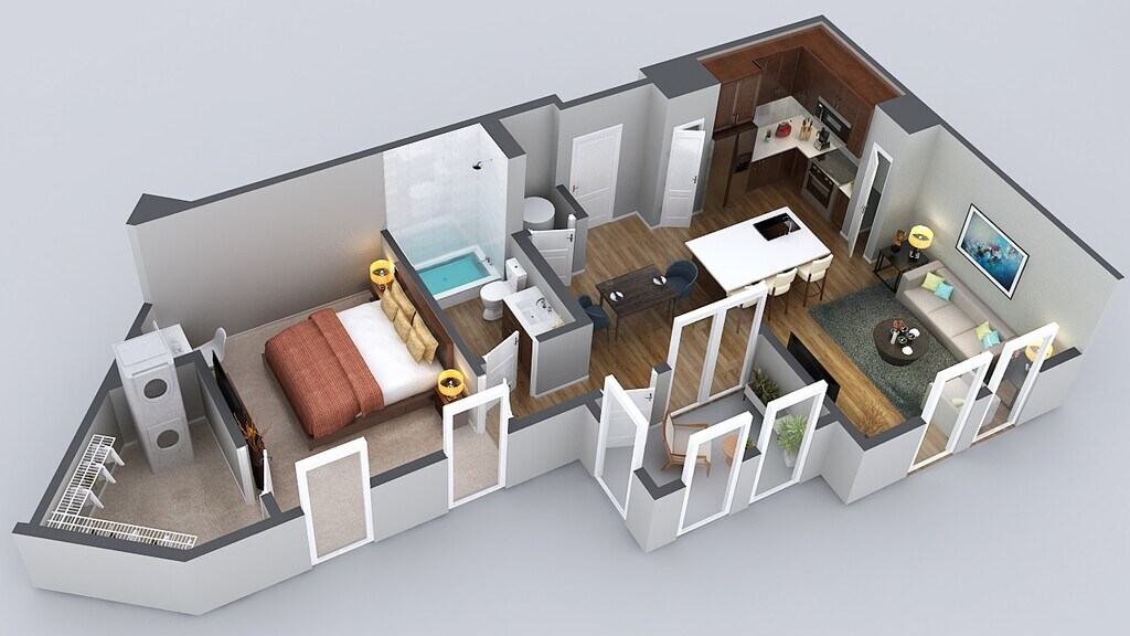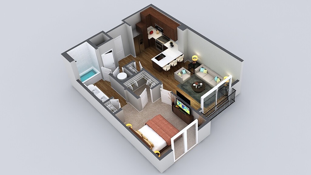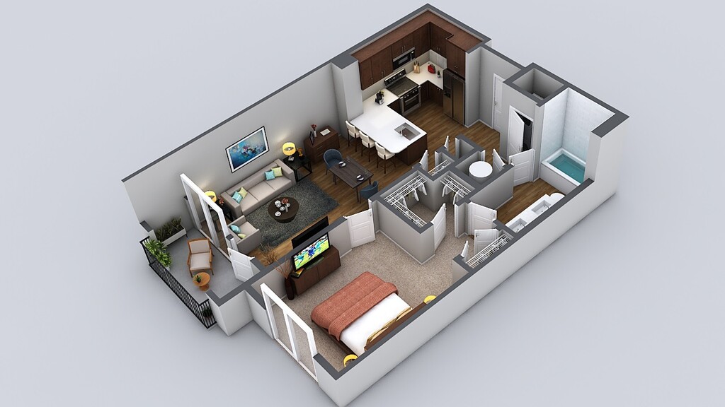 1 Dormitorio, 1 Baño, 729 pies²Disponible AhoraGalería del Modelo