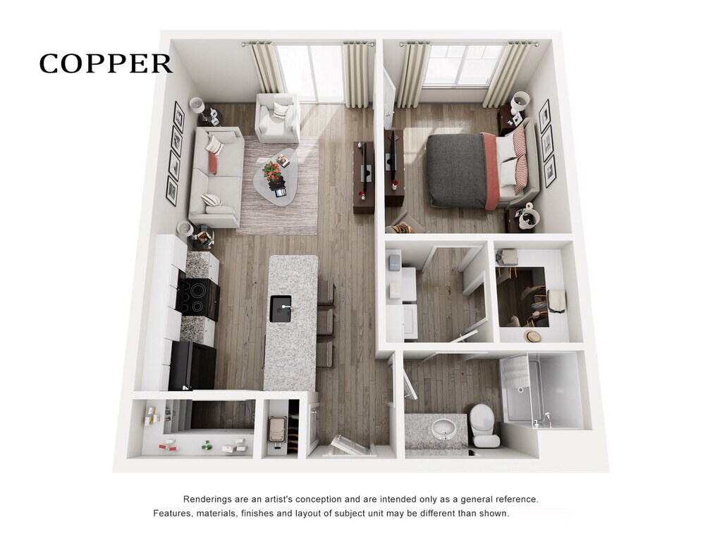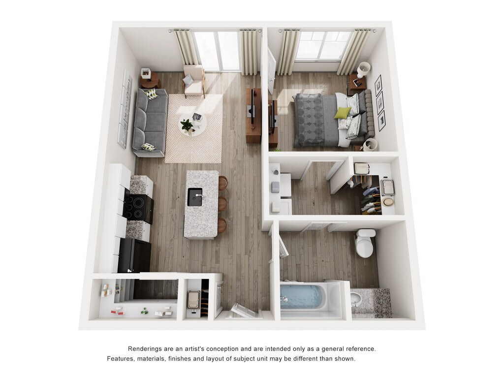 1 Dormitorio, 1 Baño, 510 pies²Disponible Dec 23Galería del Modelo