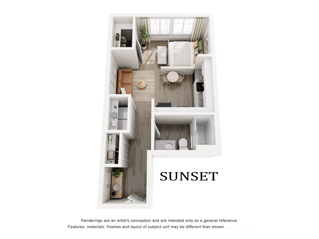Modelo de apartamento: Sunset$850Estudio, 1 Baño, 450 sq ftDisponible December 23, 2025![]()