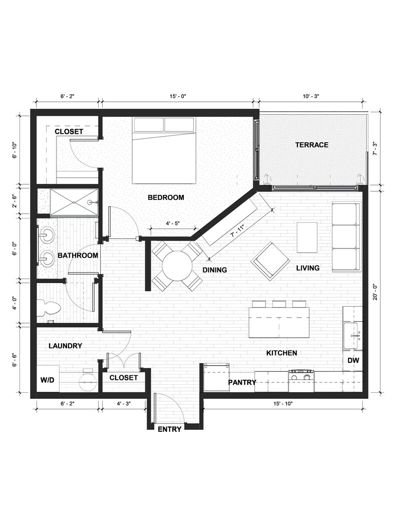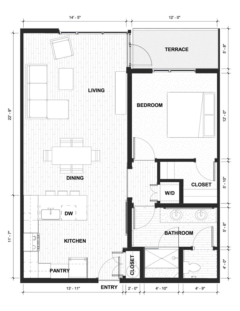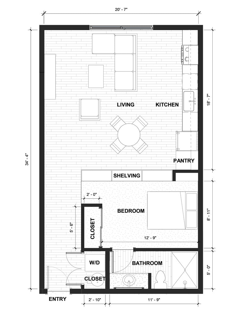 Estudio, 1 Baño, 1025 pies²Más CargosDisponible AhoraEl más grandeEsta opción tiene las unidades más grandes para este modeloGalería del Modelo