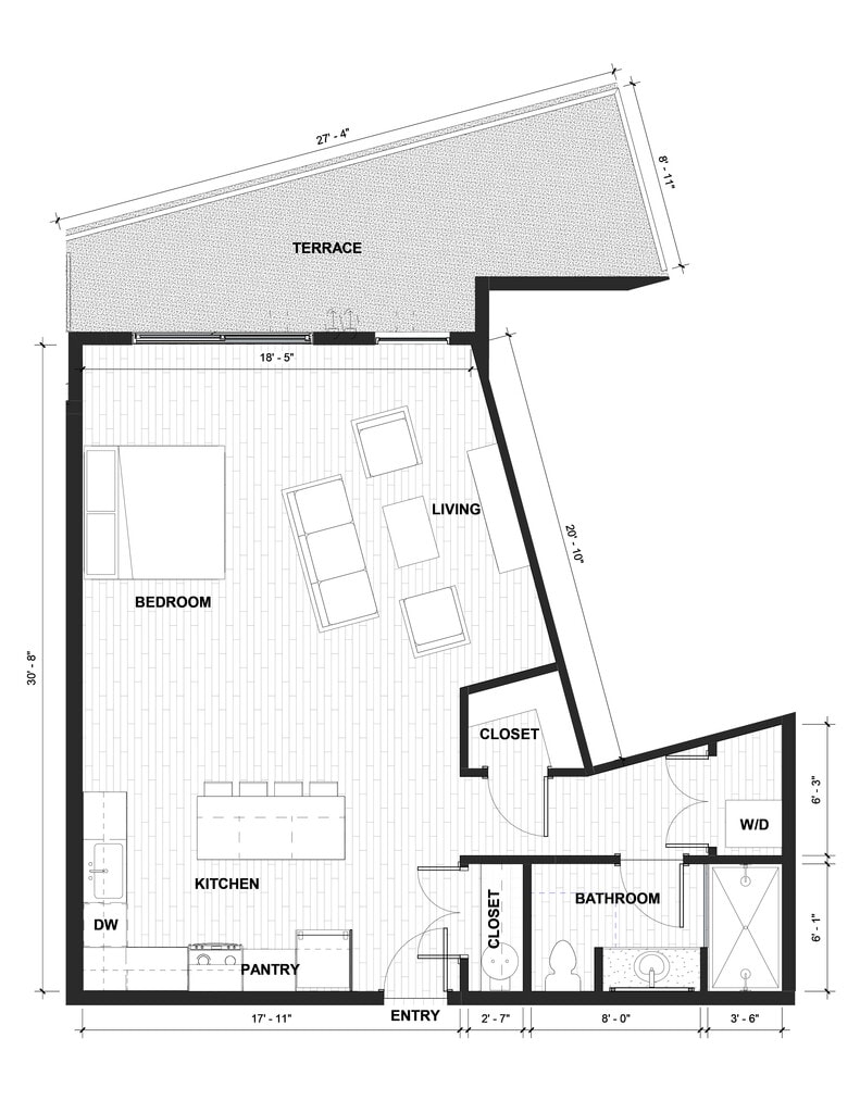 Estudio, 1 Baño, 850 pies²Más CargosDisponible AhoraGalería del Modelo