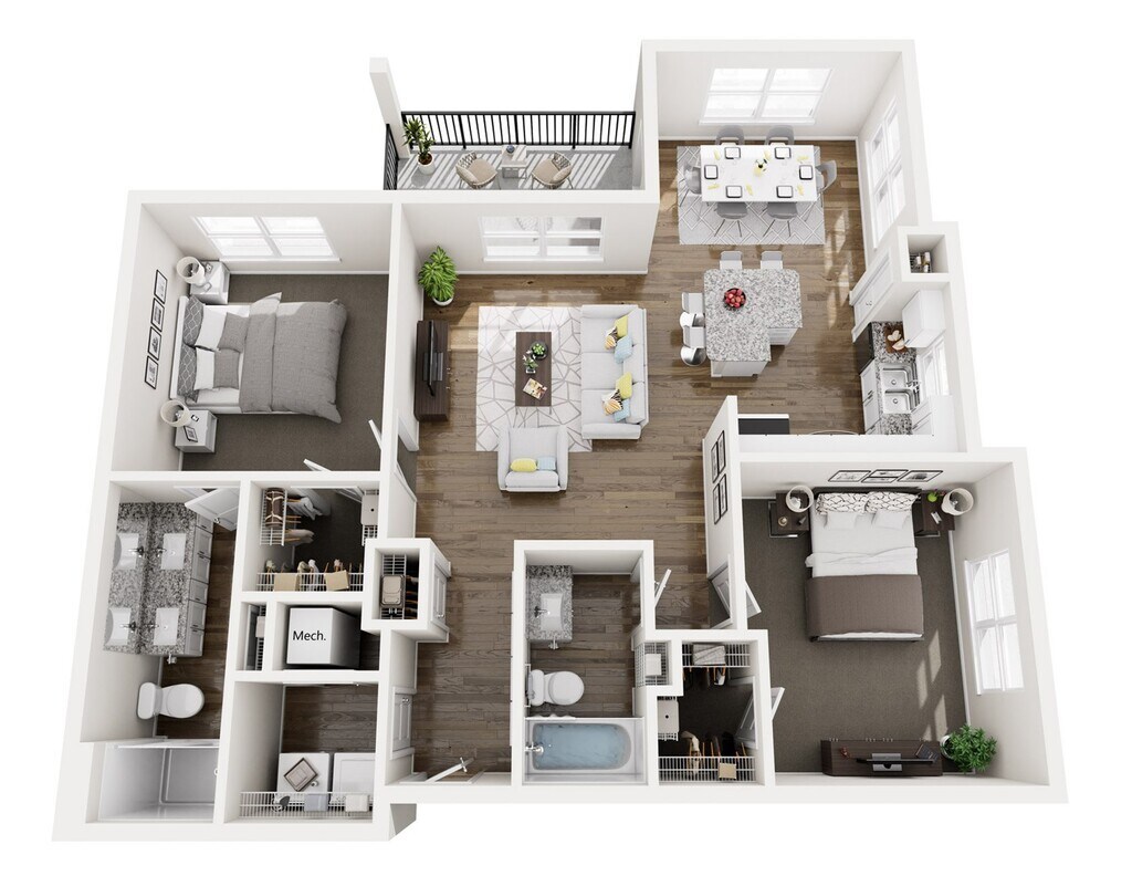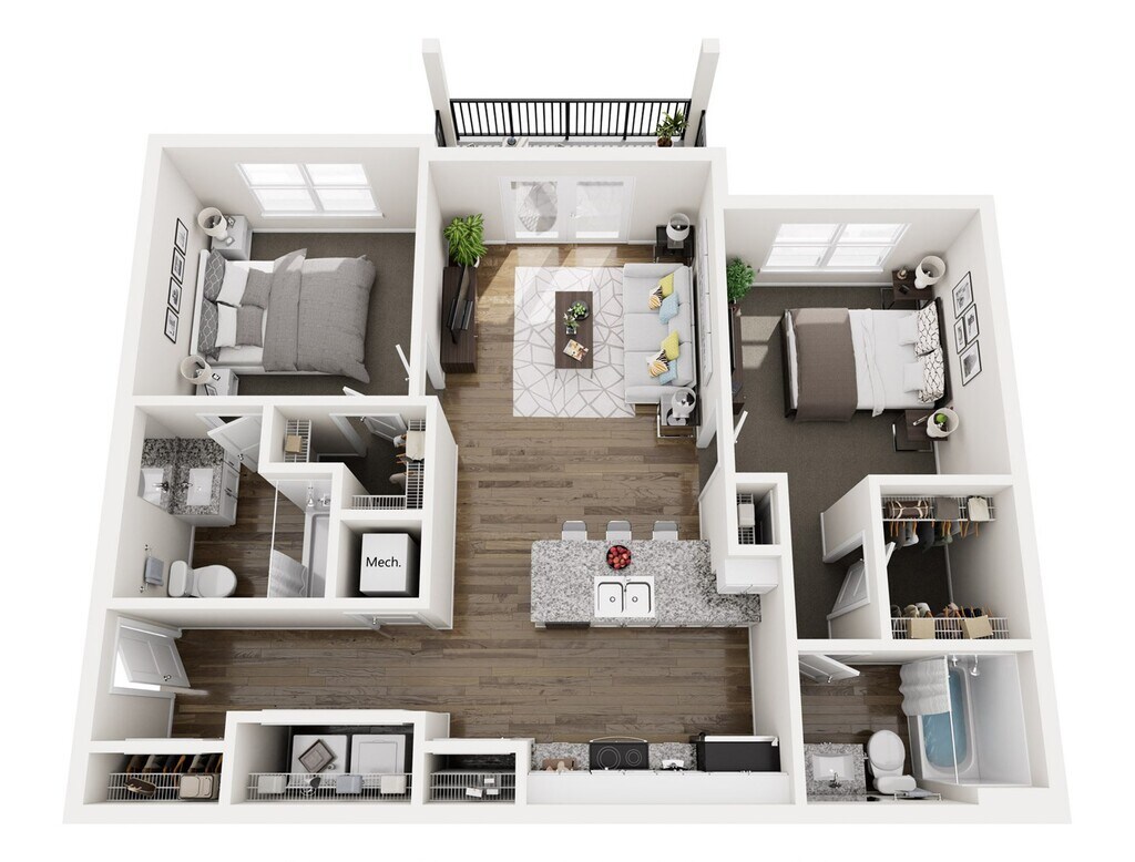2 Dormitorios, 2 Baños, 974 pies²Precio Mensual TotalDisponible May 20Precio Mensual Total