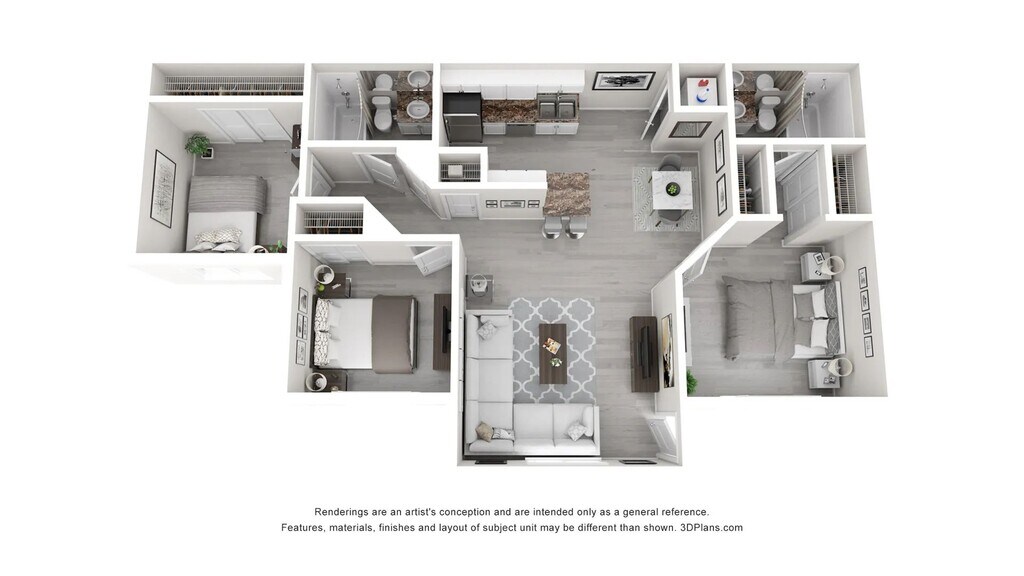 3 Dormitorios, 2 Baños, 1000 pies²Disponible AhoraGalería del Modelo