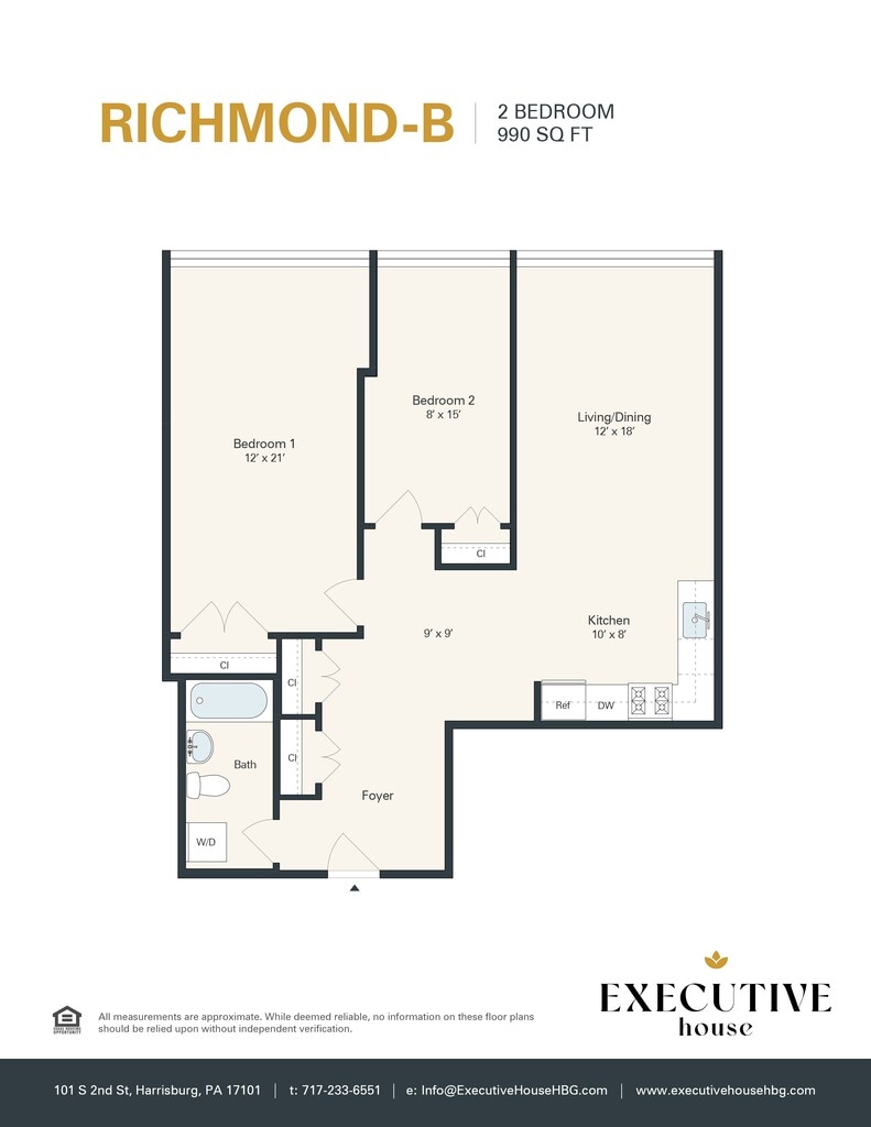 Executive House Apartments ofrece apartamentos de Estudio a 2 Dormitorios desde $1,106 con 483–990 pies cuadrados. Aquí está el precio actual y la disponibilidad: