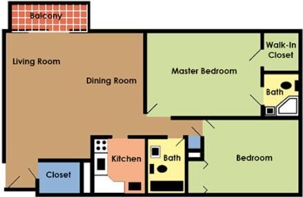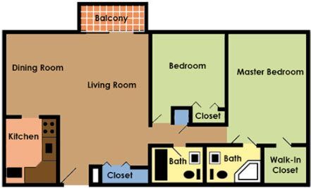 Modelo de apartamento: 1 Bed 1 Bath | BDesde $7511 Dormitorio, 1 Baño, 800 sq ftDisponible Ahora![]()