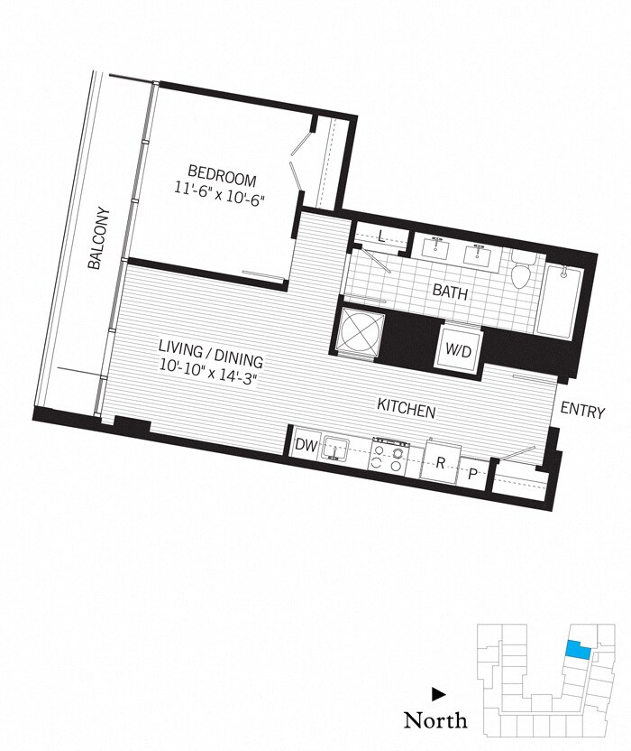Estudio, 1 Baño, 550 pies²Disponible AhoraGalería del Modelo
