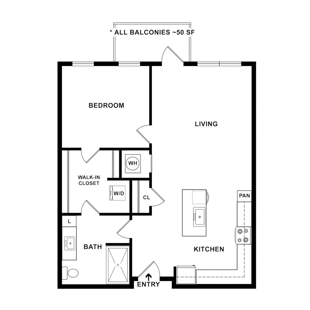 1 Dormitorio, 1 Baño, 750 pies²Disponible Dec 13Galería del Modelo