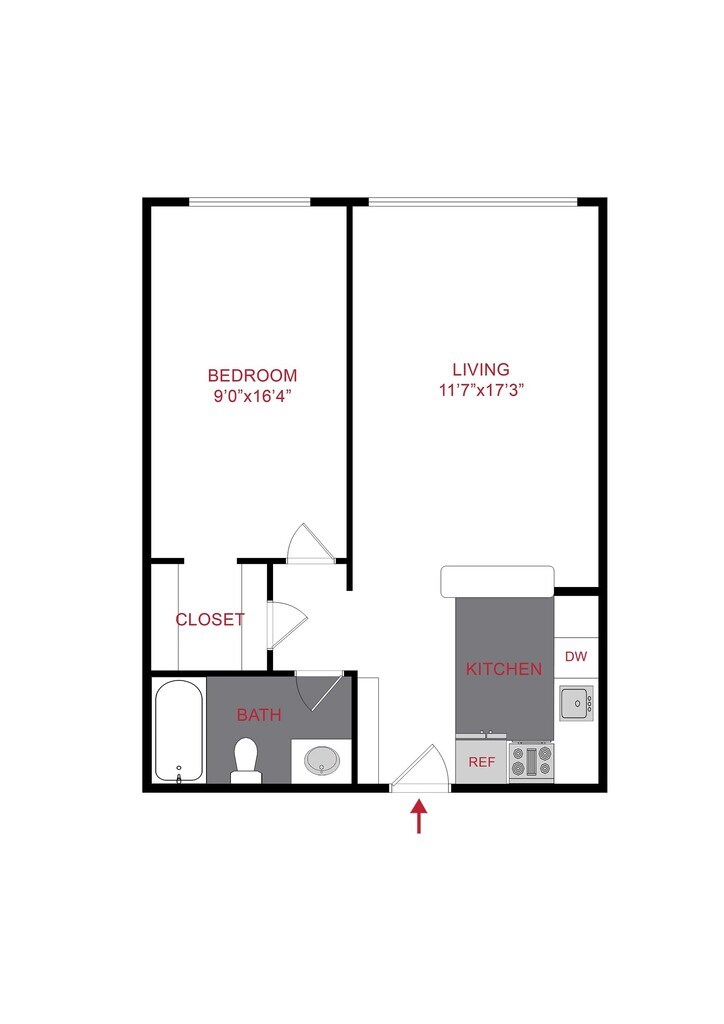 Modelo de apartamento: 252.A41 Dormitorio, 1 Baño, 575 sq ftDisponible February 21, 2026![]()