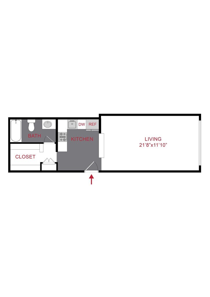 Modelo de apartamento: 252.A21 Dormitorio, 1 Baño, 565 sq ftDisponible Ahora![]()