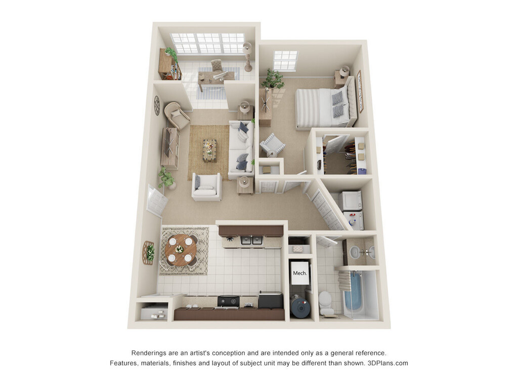 1 Dormitorio, 1 Baño, 850 pies²Disponible Dec 10Galería del Modelo