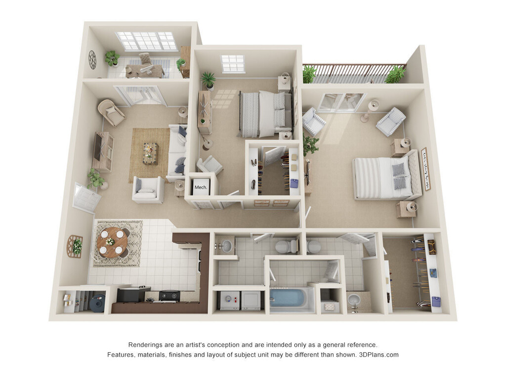 2 Dormitorios, 1.5 Baños, 1300 pies²Disponible AhoraGalería del Modelo