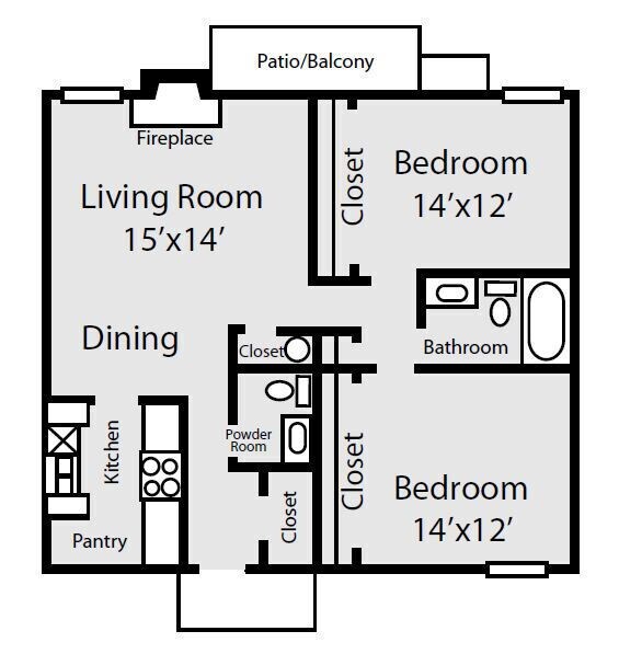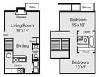 Modelo de apartamento: 2B 1.5B ApartmentsDesde $1,1502 Dormitorios, 1.5 Baños, 960-975 sq ftDisponible Ahora![]()