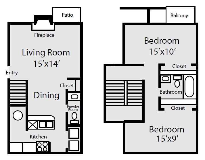 Modelo de apartamento: 2B 1.5B TownhomesDesde $1,2372 Dormitorios, 1.5 Baños, 1045 sq ftDisponible Ahora![]()