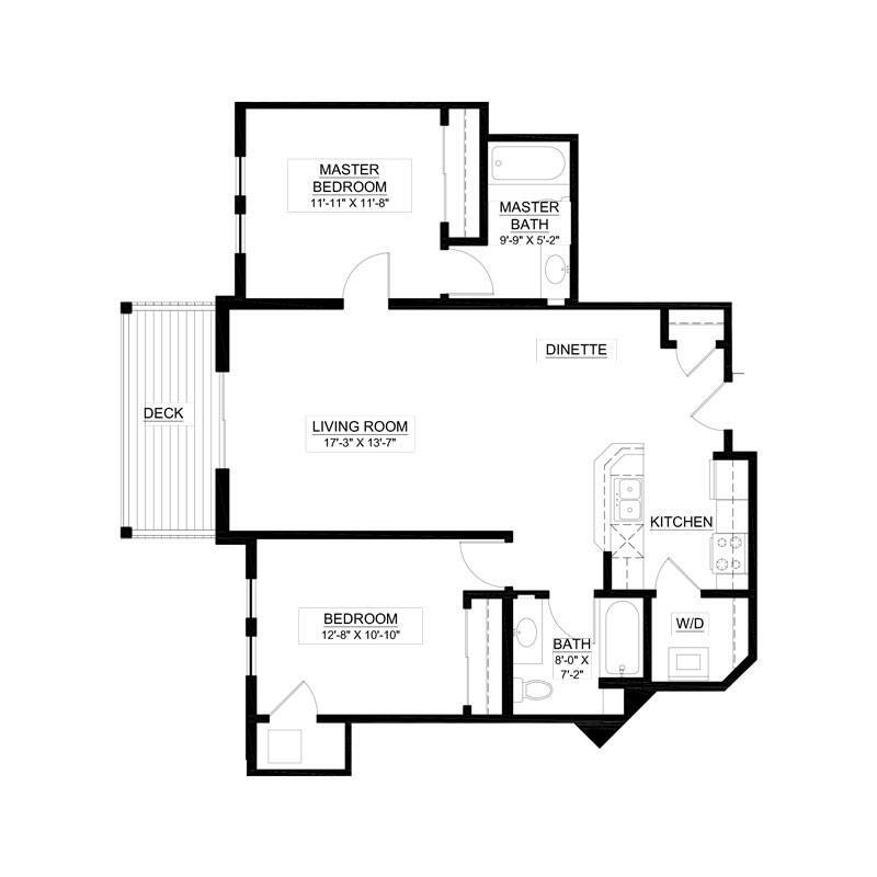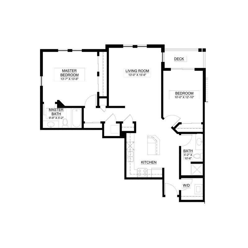 1 Dormitorio, 2 Baños, 1270 pies²El más grandeEsta opción tiene las unidades más grandes para este modeloGalería del Modelo