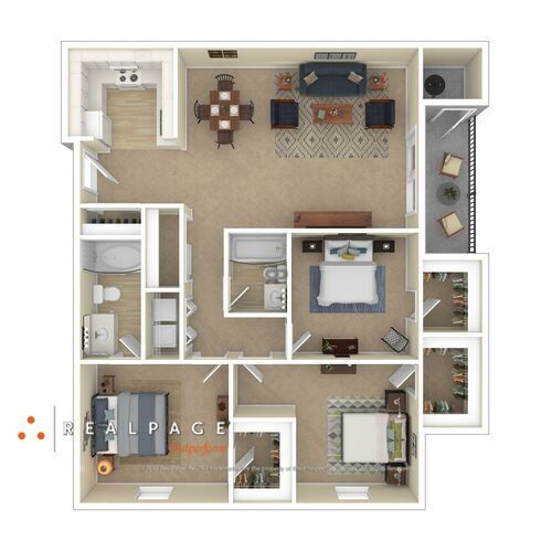 Modelo de apartamento: B3 - 2 Bedroom - Starting at $1430 - $1470Desde $1,4302 Dormitorios, 2 Baños, 1050 sq ftDisponible December 12, 2025PlanosFotos![]()