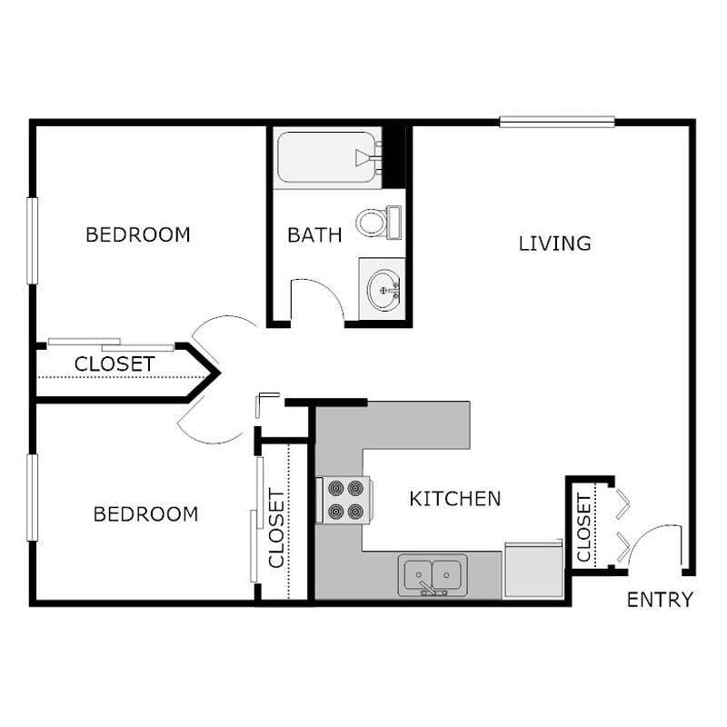 Modelo de apartamento: 2 Bed 1 Bath B$1,0152 Dormitorios, 1 Baño, 750 sq ftNo Disponible2 Bed 1 Bath B - Plano 1