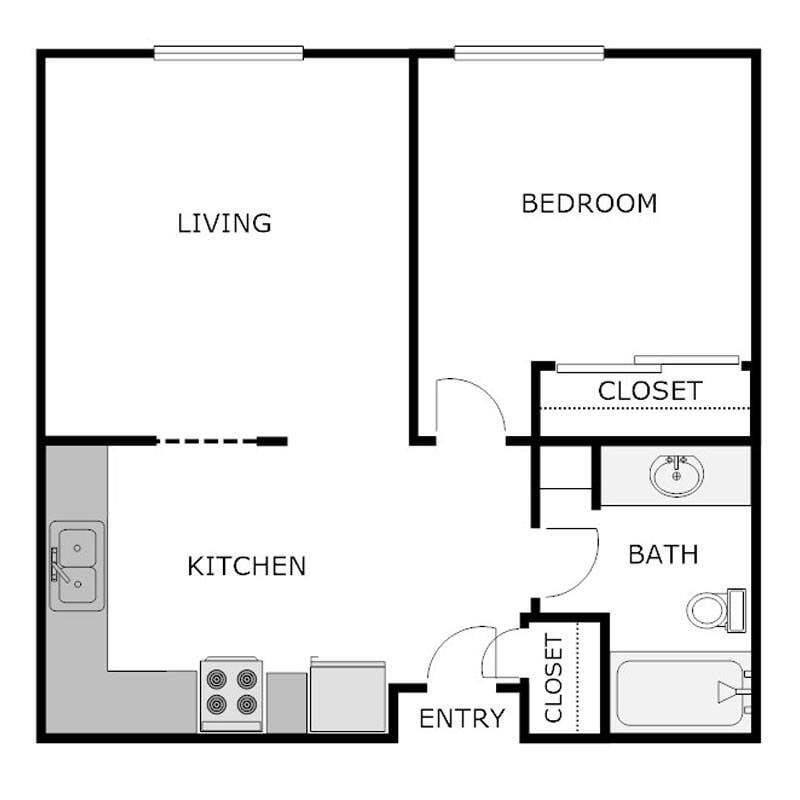 2 Dormitorios, 1 Baño, 750 pies²Galería del Modelo