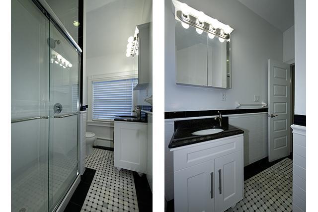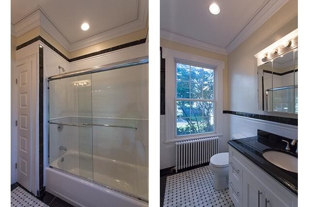- Baño de azulejos de cerámica con cabezal de ducha tipo lluvia
