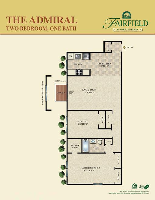 Fairfield At Port Jefferson ofrece amplios apartamentos en un ambiente estilo campestre a minutos del hermoso, el histórico Port Jefferson Village de Harbor Village o el famoso North Shore en Long Island. Apartamentos tipo estudio, de una y dos habitaciones Gabinetes de cocina modernos, algunas cocinas con electrodomésticos de acero inoxidable. Microondas y lavaplatos Algunos apartamentos cuentan con encimeras de granito. La calefacción y el agua caliente están incluidos. Alfombrado gris y amplio de lujo y pintura de pared gris con molduras de techo y de base en color blanco. Algunos con terraza Nuestros hermosos jardines tienen entradas con cascada y paisajes diseñados profesionalmente. Gimnasio gratuito Centro de lavandería en el lugar. Un destino en Long Island, Port Jefferson, que está convenientemente ubicadocerca de SUNY Stony Brook/University Hospital, St. Charles y Mather Hospitals. Da un paseo por la hermosa ciudad de Port Jefferson Harbor y por las tiendas/restaurantes y ferry que te lleva a Connecticut. Consulta sobre las comodidades para residentes de Village. Cerca de las playas, LIRR y de las mejores escuelas calificadas del distrito de Port Jefferson.