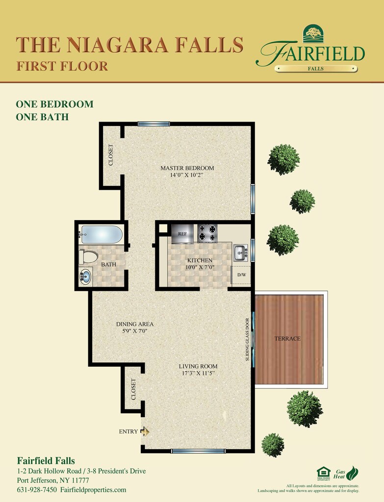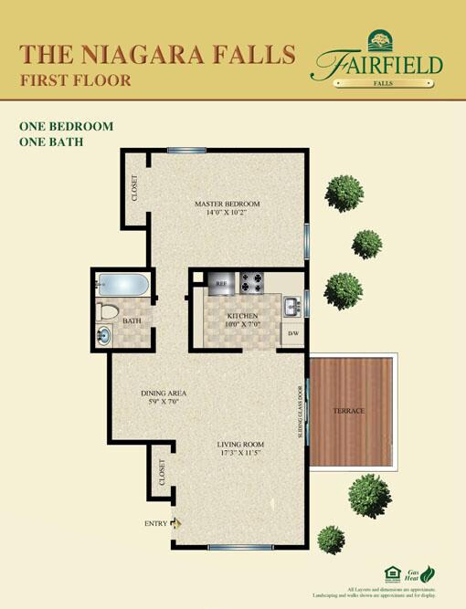 Modelo de apartamento: The Niagara Falls$2,4351 Dormitorio, 1 Baño, 657 sq ftDisponible AhoraPlanosFotos![]()