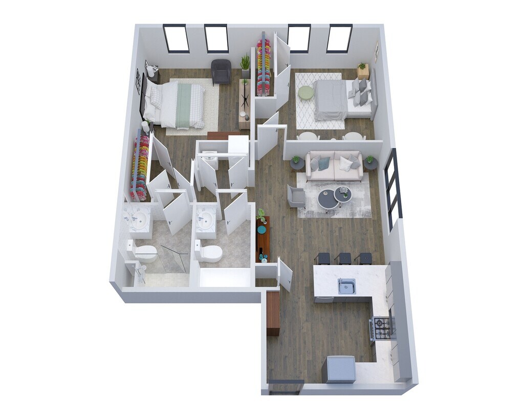 1 Dormitorio, 1 Baño, 703 pies²Disponible AhoraGalería del Modelo