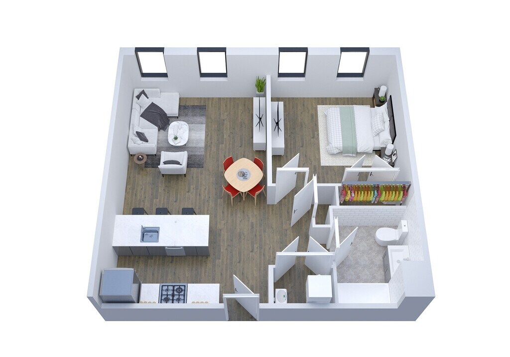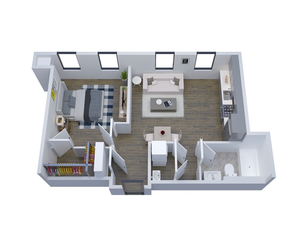 1 Dormitorio, 1 Baño, 506 pies²Disponible AhoraGalería del Modelo