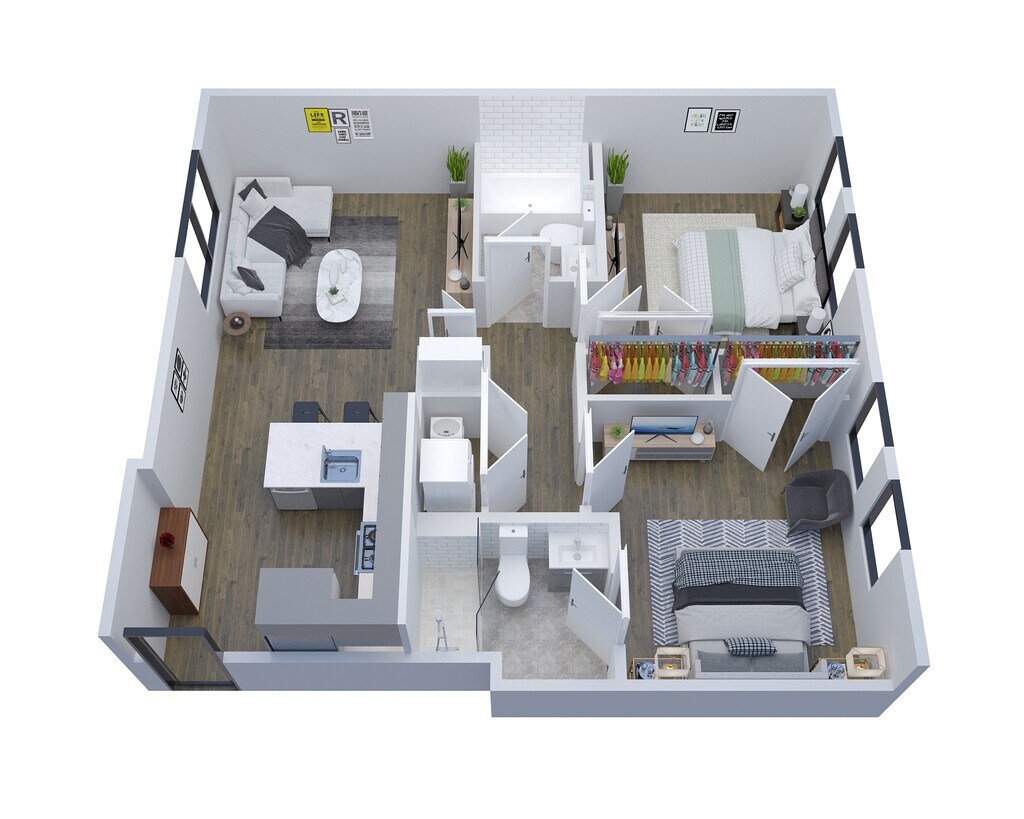 1 Dormitorio, 1 Baño, 741 pies²Disponible AhoraGalería del Modelo