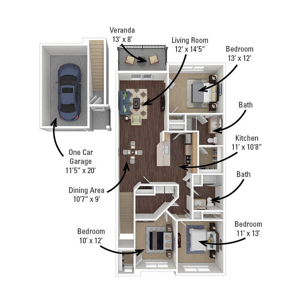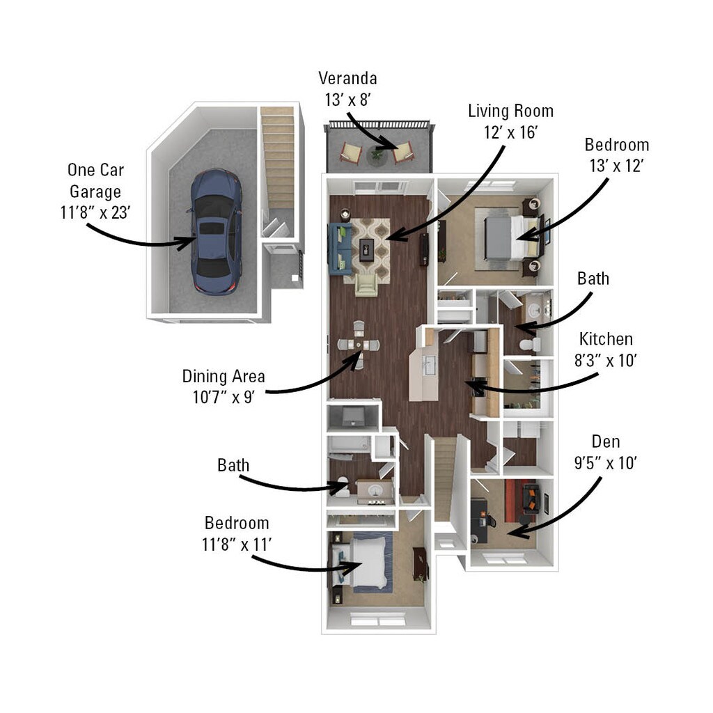1 Dormitorio, 1 Baño, 958 pies²Disponible AhoraEl más grandeEsta opción tiene las unidades más grandes para este modeloGalería del Modelo