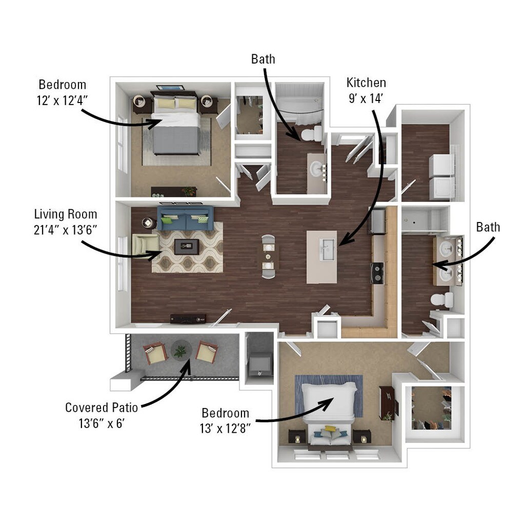 Modelo de apartamento: Hemlock (Apartment)$1,8952 Dormitorios, 1 Baño, 1086 sq ftDisponible Ahora![]()