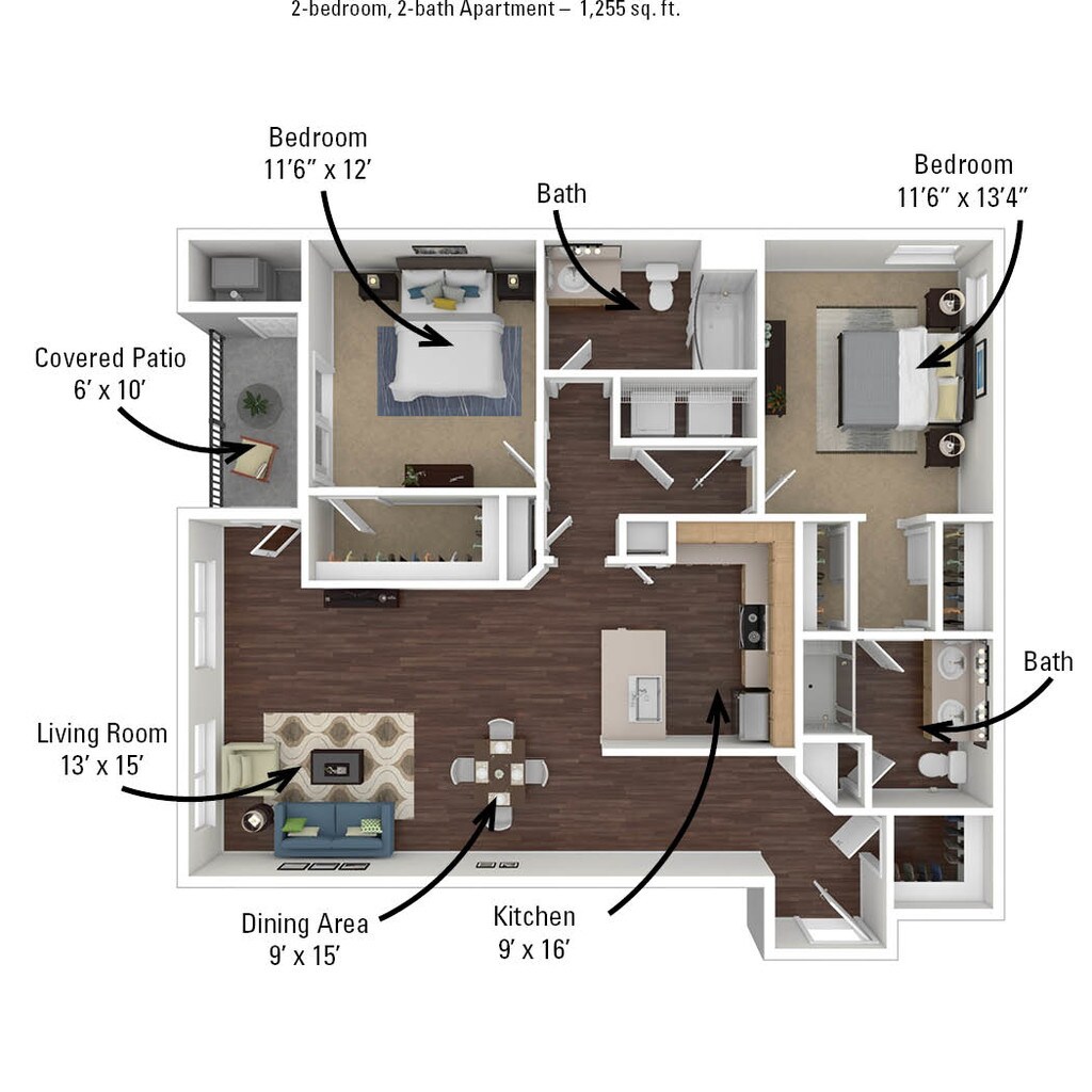 2 Dormitorios, 2 Baños, 1230 pies²Disponible AhoraGalería del Modelo