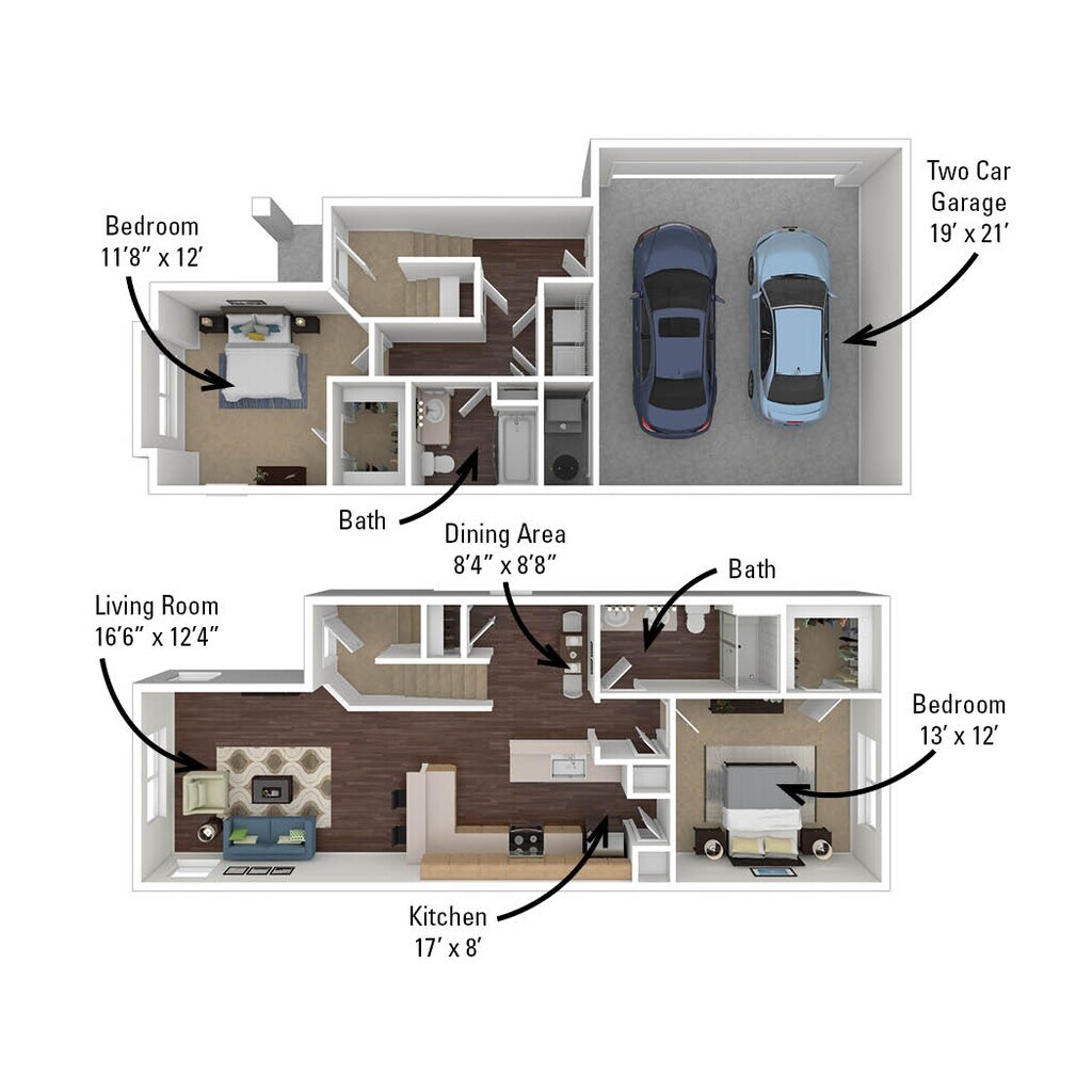2 Dormitorios, 1 Baño, 1086 pies²Disponible AhoraGalería del Modelo