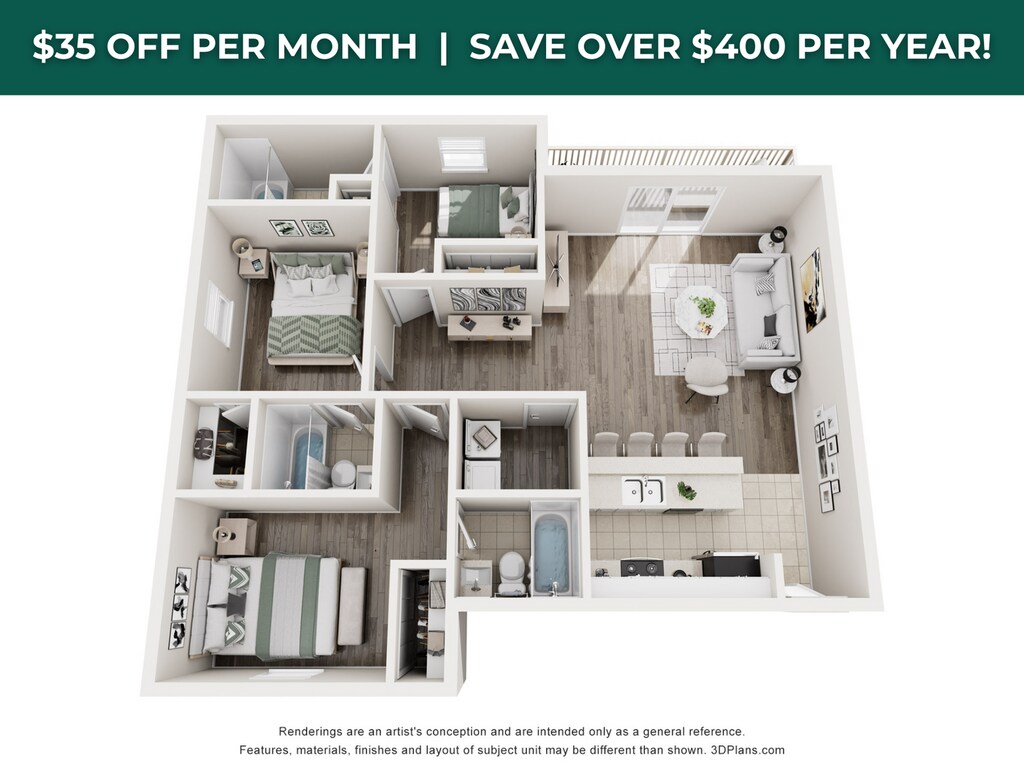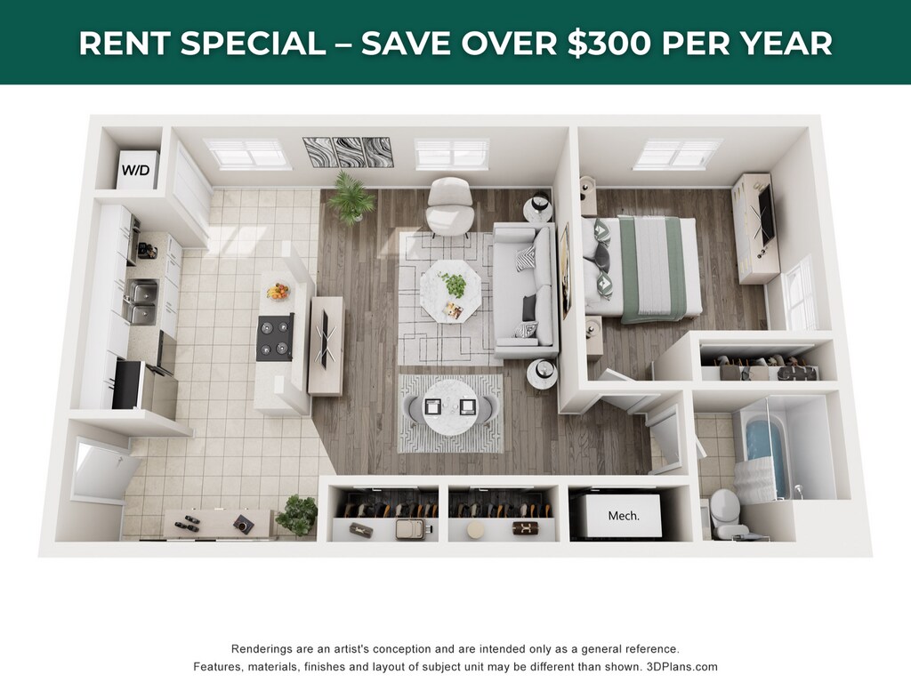 1 Bed, 1 Bath, 925 sq ftAvailable Aug 17Largest 1 BedroomThis is the largest 1 Bedroom at this PropertyModel Gallery